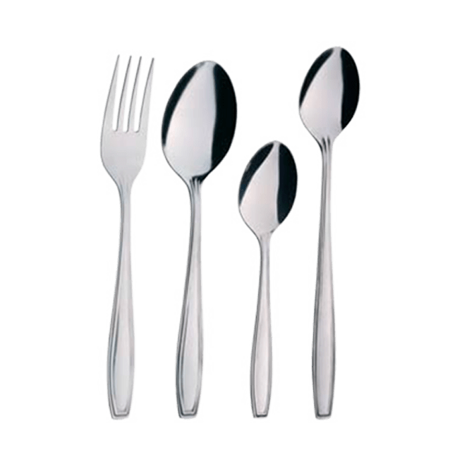 We offer a complete flatware range for customers to choose from, including but not limited to: table spoon, table fork, cake fork, teaspoon, coffee spoon, ice teaspoon, etc.