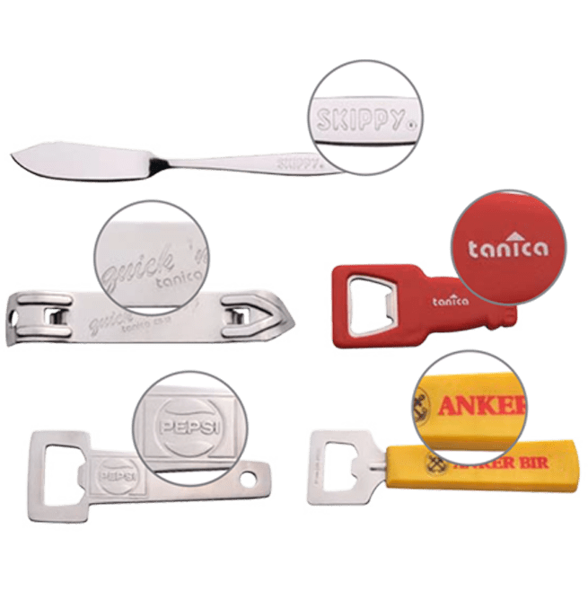 Our gadget offerings include bottle openers, can openers, butter spreaders, etc. Depending on the model, your logo can be printed (screen print or hot press) or stamped.To inquiry for more gadget choices, please contact us directly.